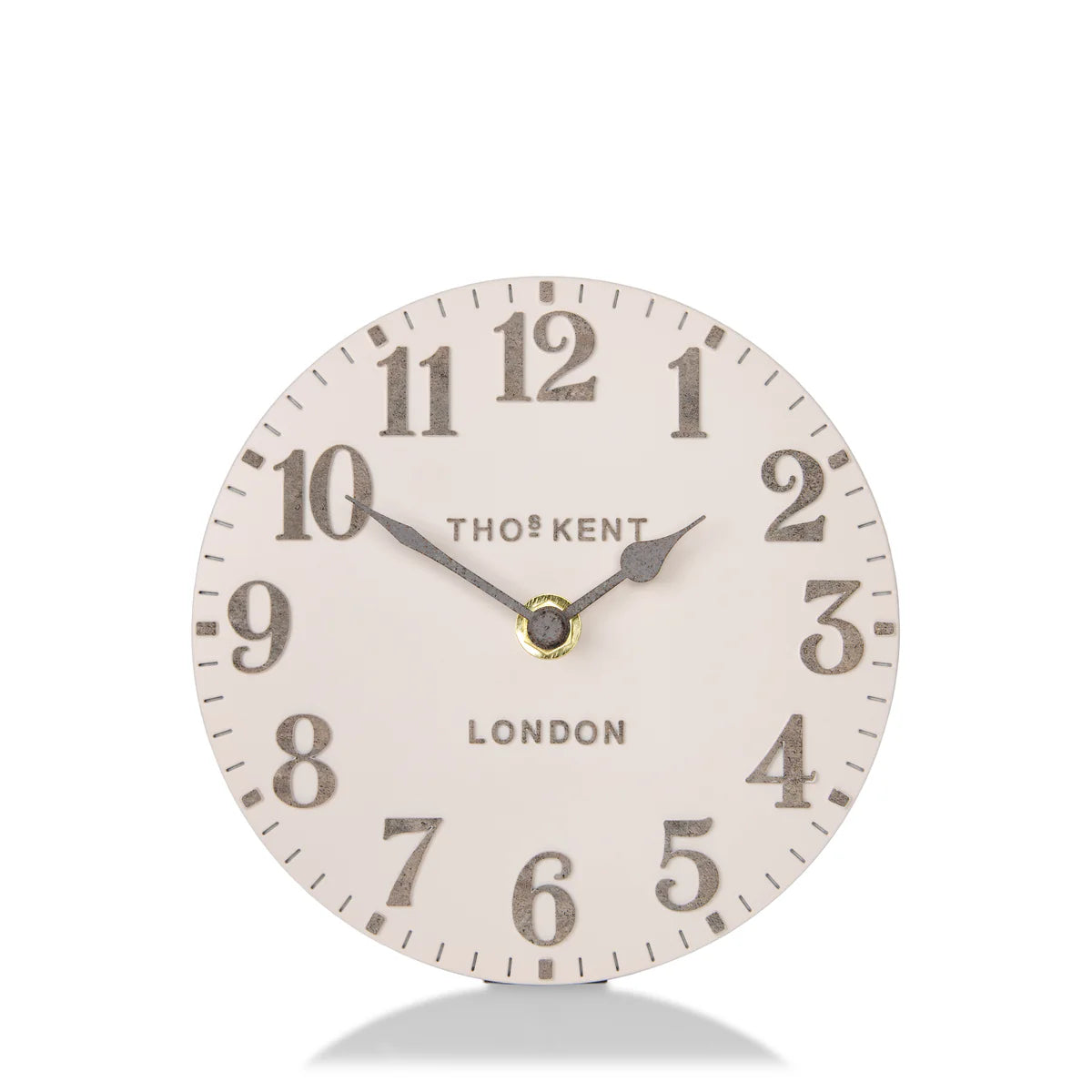 Harmonizing the classic beauty of the traditional Arabic mantel clock design with a stunning contrast of urban wonder. A soft, shy pink hue rolls over the striking, curvaceous dial. A delicately textured stone effect embraces the numerals and hands, impressively creating a stunning collaboration between styles. The unique fusion of British heritage and contemporary style creates a captivating interior accessory, drawing you in with its allure.