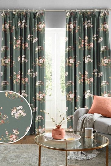 Inspired by an antique painted artwork from the Laura Ashley archive, the Rosemore curtain features a striking floral print. Printed onto cotton in a pretty and charismatic colour palette of rich Fern green, soft corals and warm ochres. The Rosemore design incorporates traditional British flowers and fruits including elegant roses, strawberries and elderflowers giving the delightful look of classic country charm. These beautiful curtains are blackout lined, have an eyelet header and are ready to hang.
