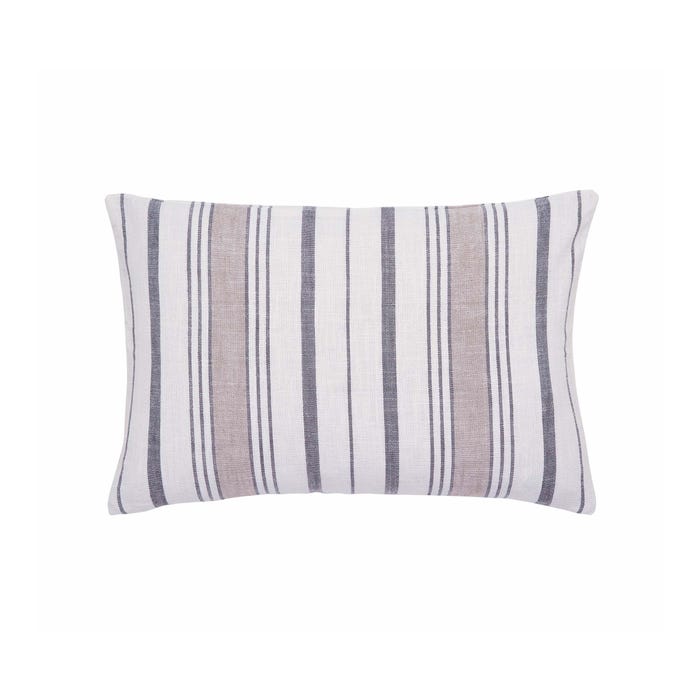 A beautifully textured woven stripe design cushion in linen and grey tones.100% cotton.