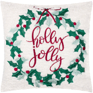 Holly Wreath Embroidered Cushion Multicolour
