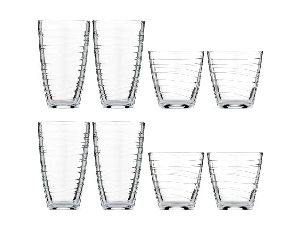 The 8 piece tumbler set features a swirl pattern, adding a decorative,touch to the glassware and can enhance the visual appeal of your table setting. These tumblers are versatile, perfect for serving a variety of beverages, such as water, iced tea, juice or cocktails.