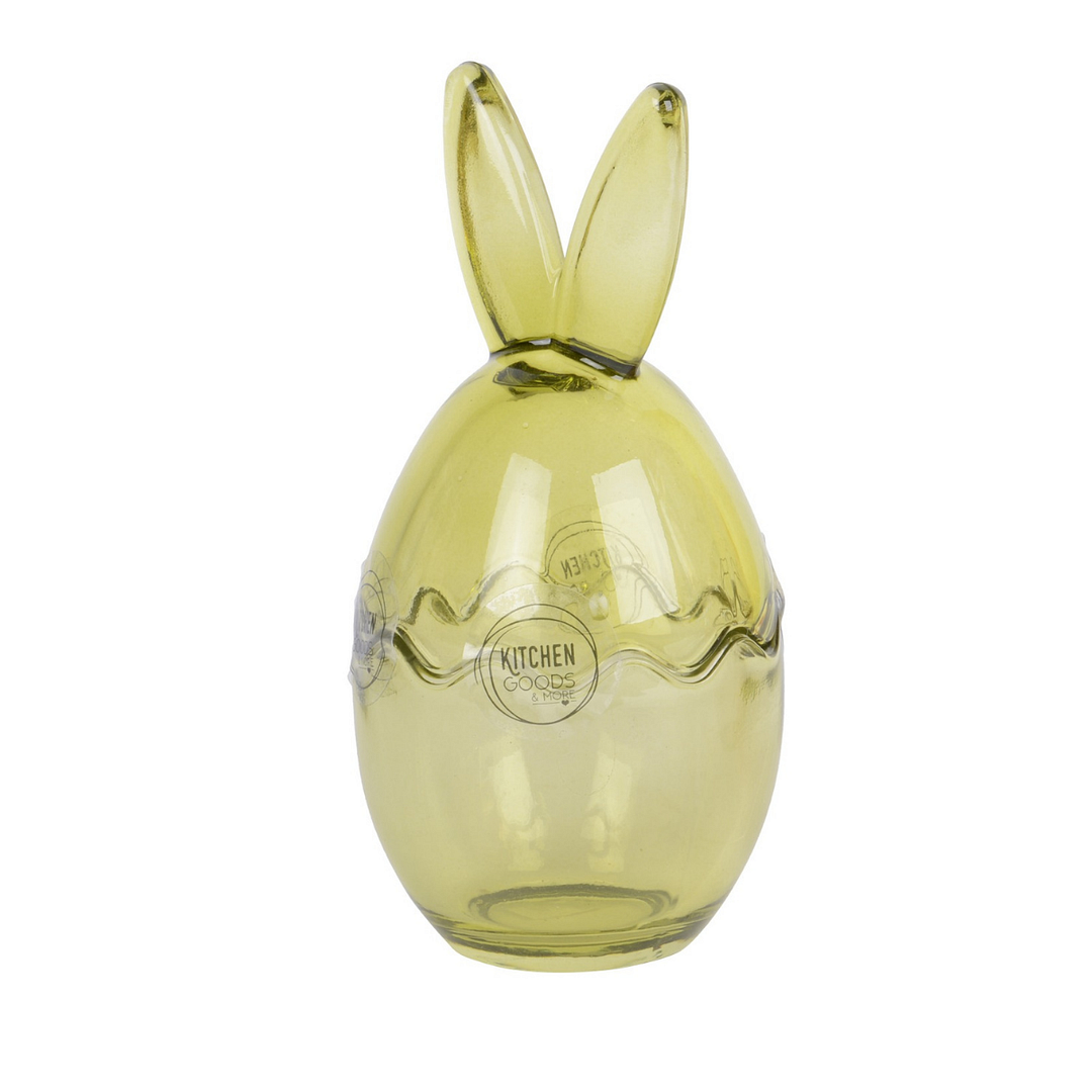 Bring cheerful accents into your home with this Bunny jar from Kitchen Goods. These glass decorative egg-shaped jars with playful bunny ears radiate a fresh, colorful vibe. Thanks to the transparent, colored glass, it will look beautiful anywhere and give any table or cabinet a light, airy feel. The contemporary design combines playfulness with elegance and fits seamlessly into a modern interior. • Made of glass • Dimensions per piece: height 17 cm, diameter 8 cm • Suitable for indoor use • Food-safe material