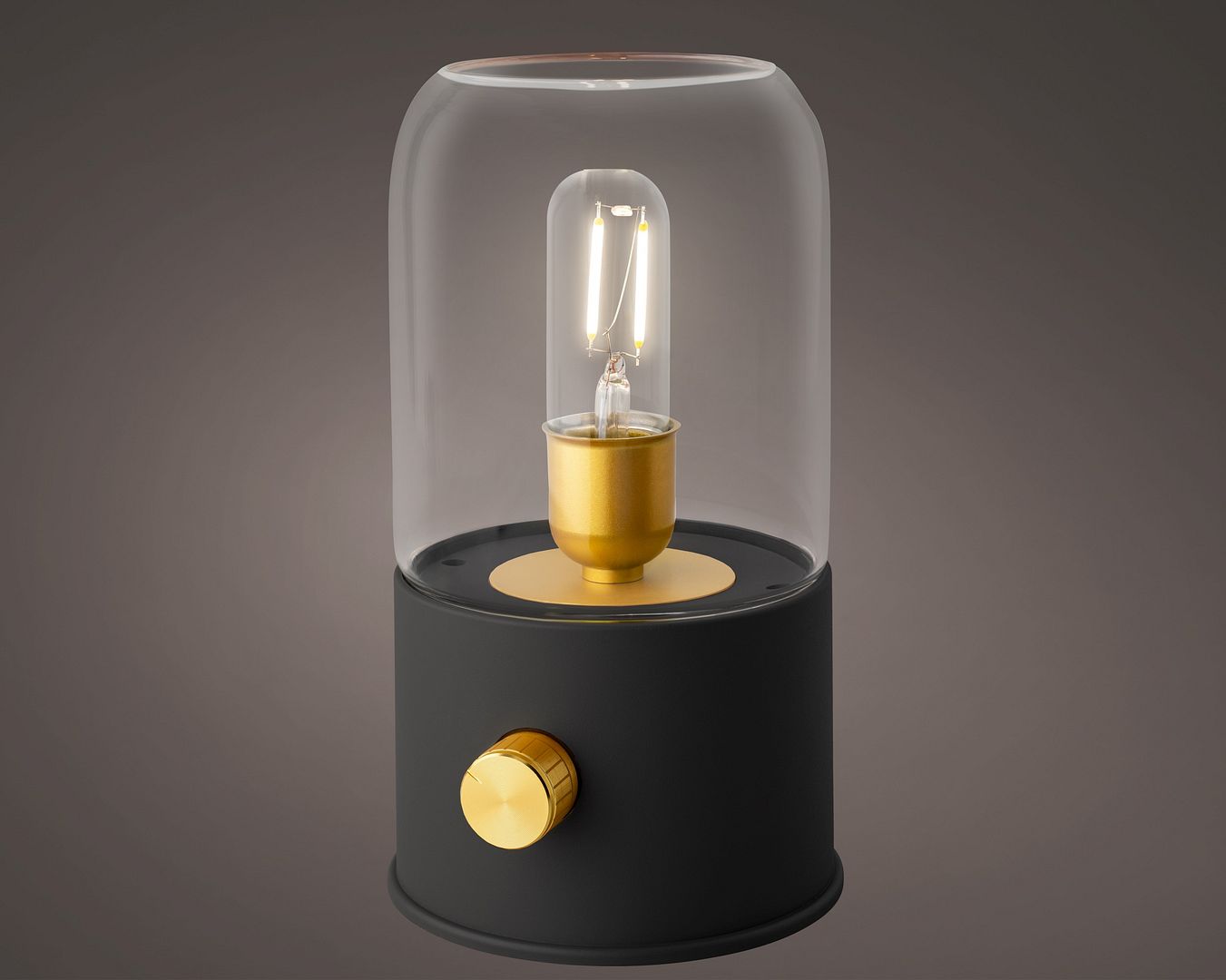 Lumineo Portable Black Table Lamp with Warm White Light A soft glow fills indoor spaces with this stylish table lamp from Lumineo, perfect for creating a warm atmosphere at home. Thanks to battery operation and a compact size of 20 cm high and 11 cm in diameter, this lamp is easy to move and can be used anywhere. The warm white LED light provides a pleasant ambiance, while the plastic material ensures a lightweight and durable finish. With a burn time of 4.5 hours, this lamp offers comfortable lighting without the hassle of cords. Benefits: • Warm white LED light for a cozy and calming atmosphere • Rechargeable battery for flexible use without an outlet • Lightweight and stylish design with practical dimensions • Easy operation via rotary knob for instant on and off