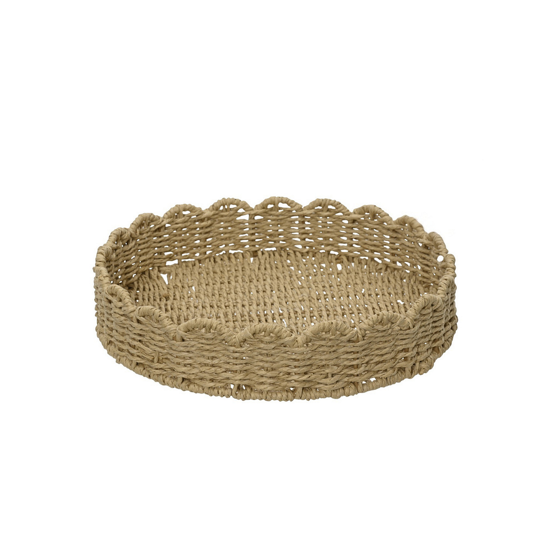 Round brown tray with wavy edge, Ø 30 cm A warm atmosphere at home starts with the right accessories. This round tray in soft brown paper adds a natural look to your interior. The wavy edge creates a playful effect and makes the tray a striking decorative item on the table. Thanks to its lightweight material and size, the tray easily fits into various spaces and styles. • Made of paper • Dimensions: 30 cm diameter, 4 cm high • Suitable for indoor use • Round shape with wavy edge as decoration