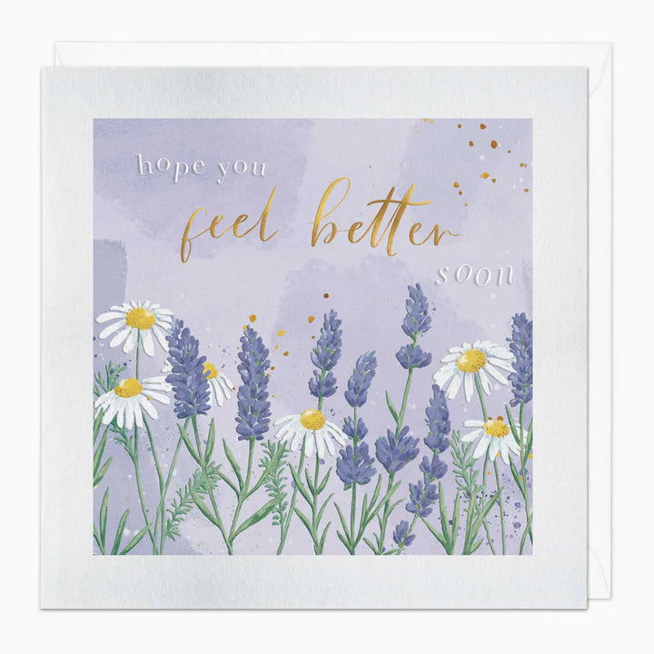 Gentle lavender and cheerful daisies bloom beneath a soft, hopeful message. It's a sweet reminder that brighter days are coming, like a little garden of good wishes.