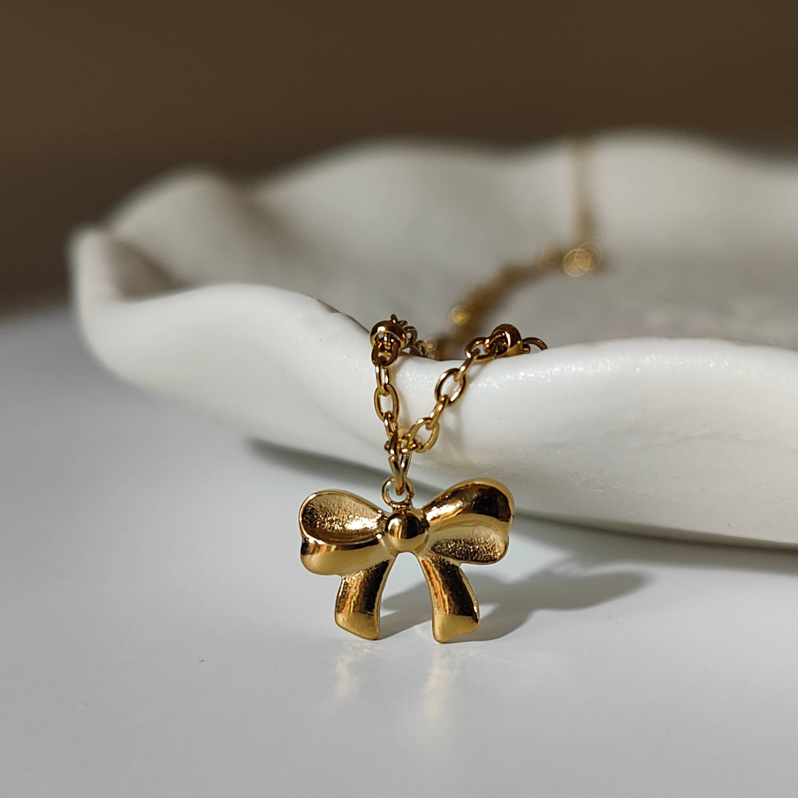 - Bowknot: real 18k gold plated on stainless steel (dimensions: 10mm x 12mm)