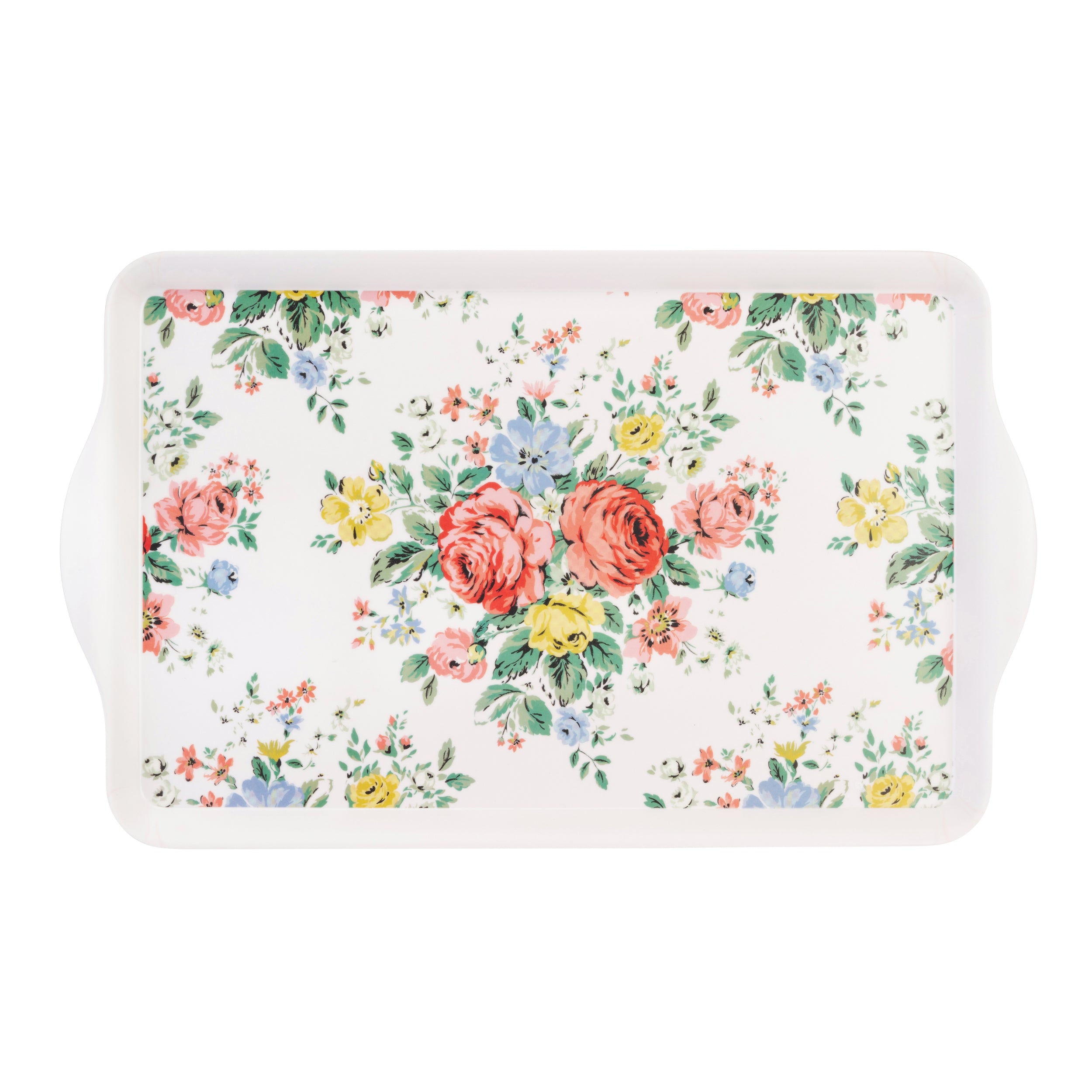 Measuring 49cm x 30cm, this Cath Kidston lap tray is made of melamine and uses a pleasing palette of reds, pinks, blues and yellow to create beautiful rich floral blooms reminiscent of an English cottage garden.