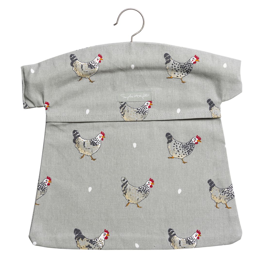 Give your pegs a home of their own in our wonderful Chicken Peg Bag, part of the Chicken Collection. This practical cotton Peg Bag features an integrated wooden hanger for convenient storage and use. Be green, ditch the tumble drier and peg your laundry out!