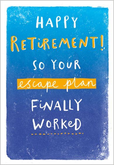 "Retirement - Escape plan finally worked", a Retirement card from the Straight Talkin' humour range. Printed on smooth board and finished with spot raised varnish and die-cut rounded corners.