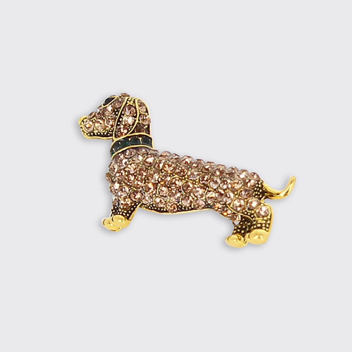 Elevate your style with this adorable Dachshund Crystal Brooch, adorned with brown and green crystals. Perfect for accessorising blazers, dresses, scarves, or bags, this brooch adds a touch of sparkle and elegance to any outfit. A timeless piece for your jewellery collection.