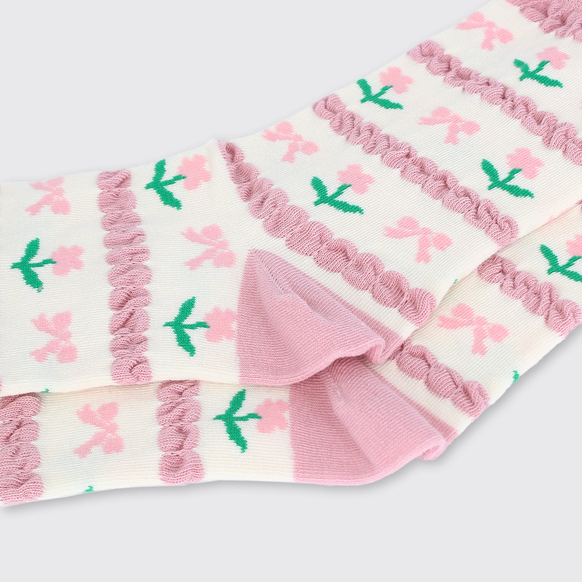 Super cute socks with a primrose and bow design, finished with puckered bands and tops. Our Millie Mae socks are made from high quality material with stretch for superb fit and seamless toes for total comfort.