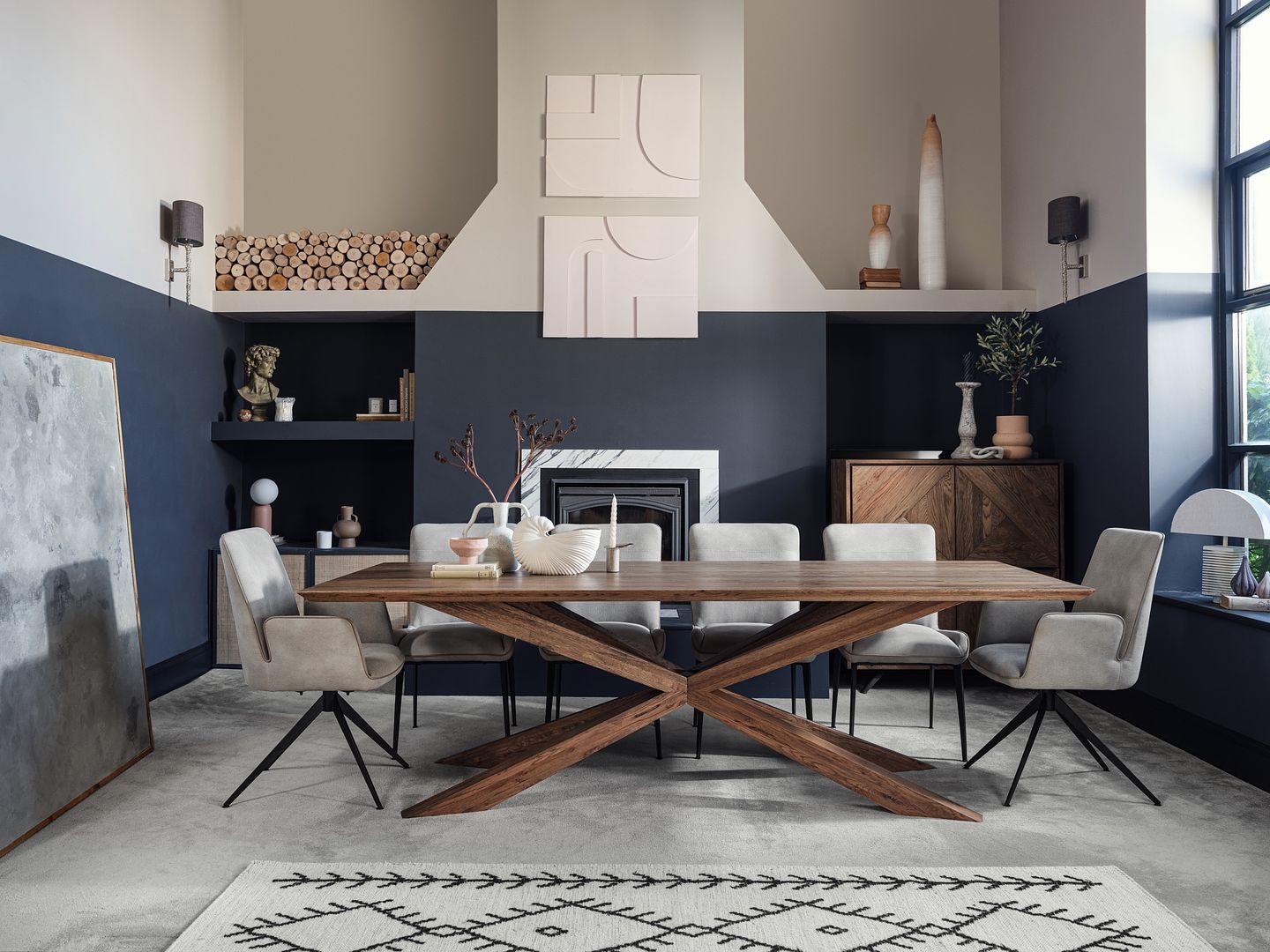 - Styled with Rebecca chairs in misty or grey