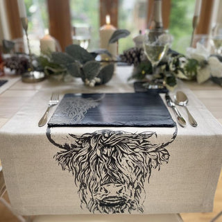 Highland Cow Linen Table Runner