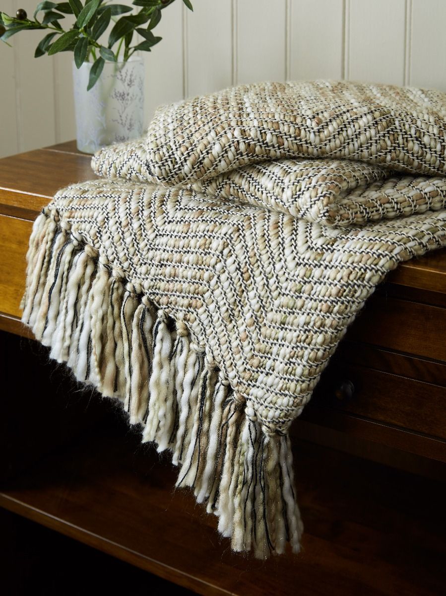 This sumptuous throw is a beautiful mix of soft tonal taupe’s, naturals, and cream, contrasted with a smart charcoal accent. With a subtle metallic yarn and soft tonal fringing this throw is guaranteed to add s smart and sophisticated feel to your home.