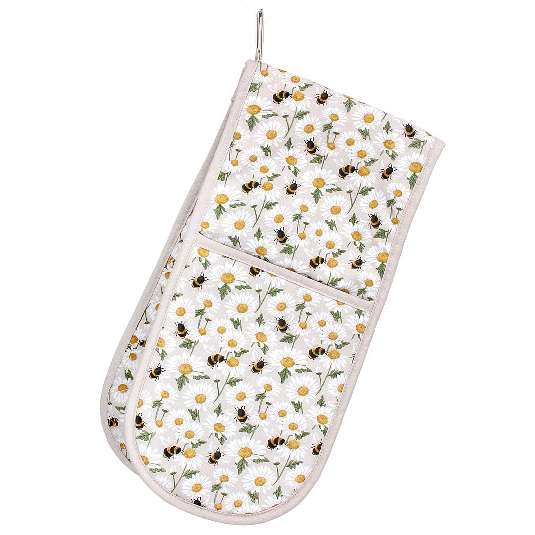 - A fun pair of fabric oven gloves with daisy and bee design