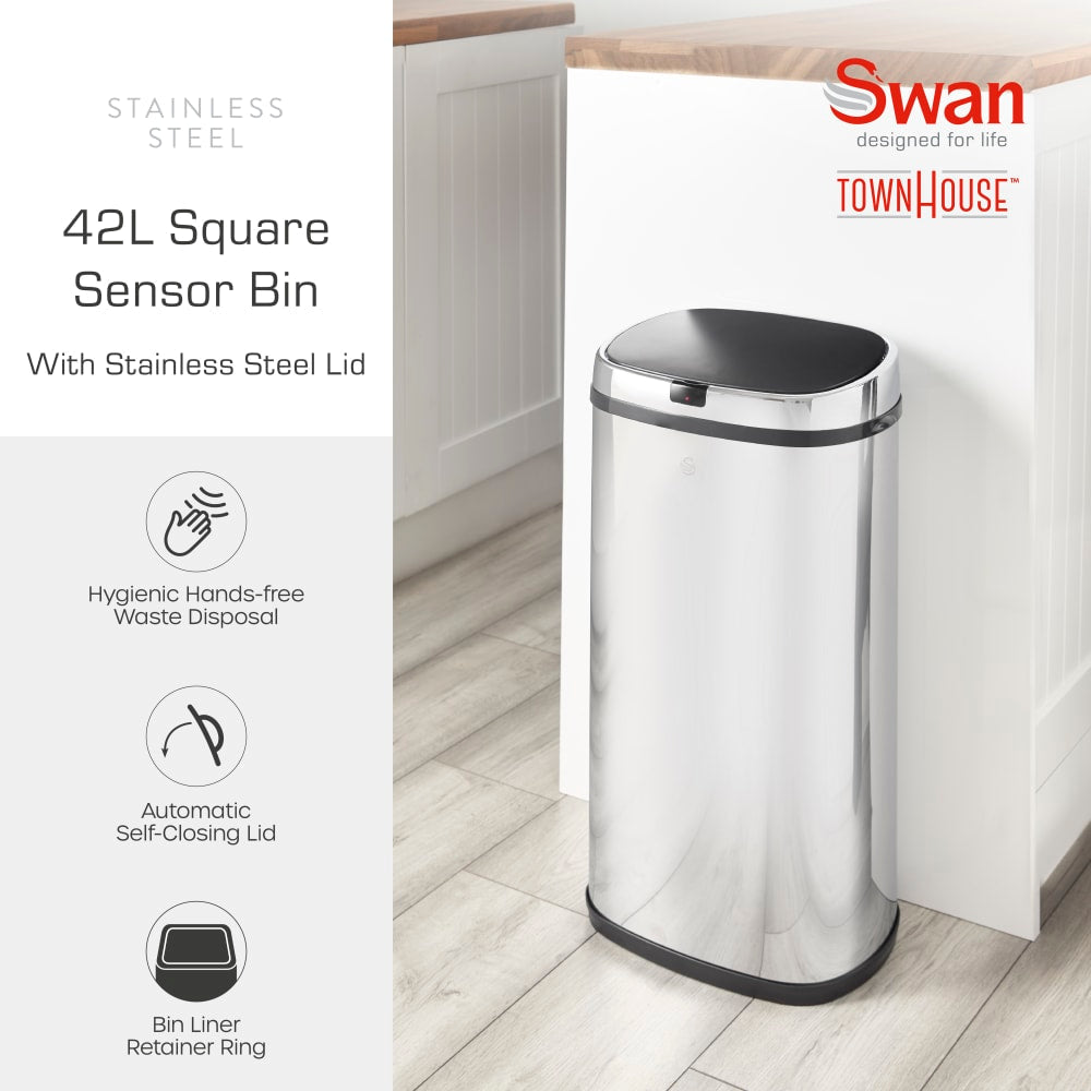 Swan Townhouse 42L Stainless Steel Sensor Bin